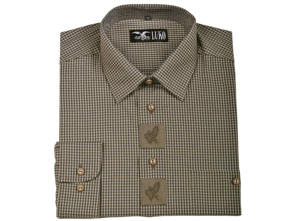 Materiál na výrobu košil je dodáván firmou vlastnící certifikát kvality ÖkoTex. košile má rovný střih, jednu kapsu a knoflíky z imitace paroží. Samozřejmostí je i náhradní knoflík.