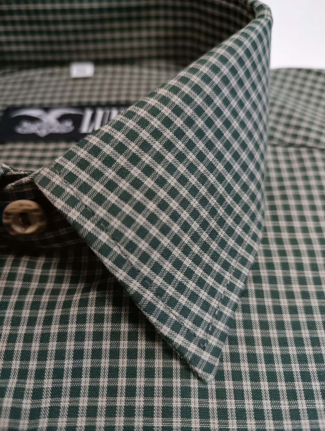 Košile se výborně hodí do saka a díky elegantnímu vzhledu je vhodná pro každou příležitost. Drobounké zelené káro neruší na pohled, ale dodává košili i lehce sportovně-elegantního vzhledu.