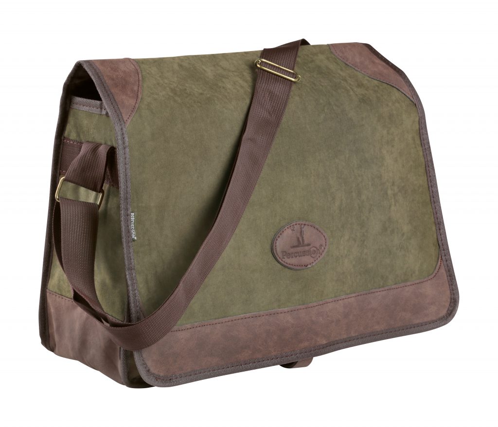 Lovecká taška Percussion Normandie je veľmi elegantná stredne veľká lovecká taška určená na poľovačky. Normandie má neabsorbujúcu podšívku, ktorá umožňuje hygienickú ochranu vnútornej strany tašky. Lovecká taška je obšitá z koženého plátna s koženým detailom. Nastaviteľní bočný popruh robí z nosenia veľmi príjemné a jednoduché. Vo vnútri tašky je 6 elastických slučiek a kožený remienok na uchytenie vrchnej časti po naplnení. Lovecká taška Percussion má tiež vonkajšie sieťové vrecko na uchovávanie použitých nábojov, príslušenstva alebo pernatej zveri.