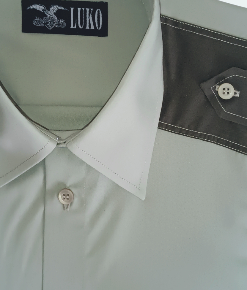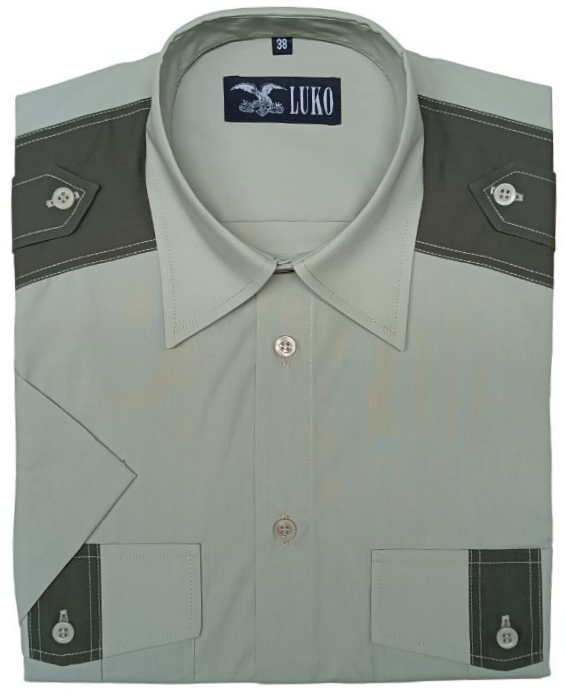 Košile má rovný střih, jednu kapsu a knoflíky. Samozřejmostí je i náhradní knoflík.