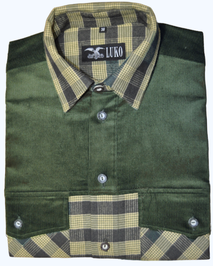 Košile má rovný střih, jednu kapsu a knoflíky z imitace paroží. Samozřejmostí je i náhradní knoflík.