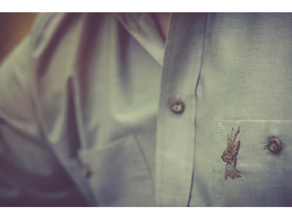 Knoflíky jsou z imitace paroží (stálobarevné a samozřejmostí je náhradní knoflík), košile má rovný střih a dvě vypasované kapsy.