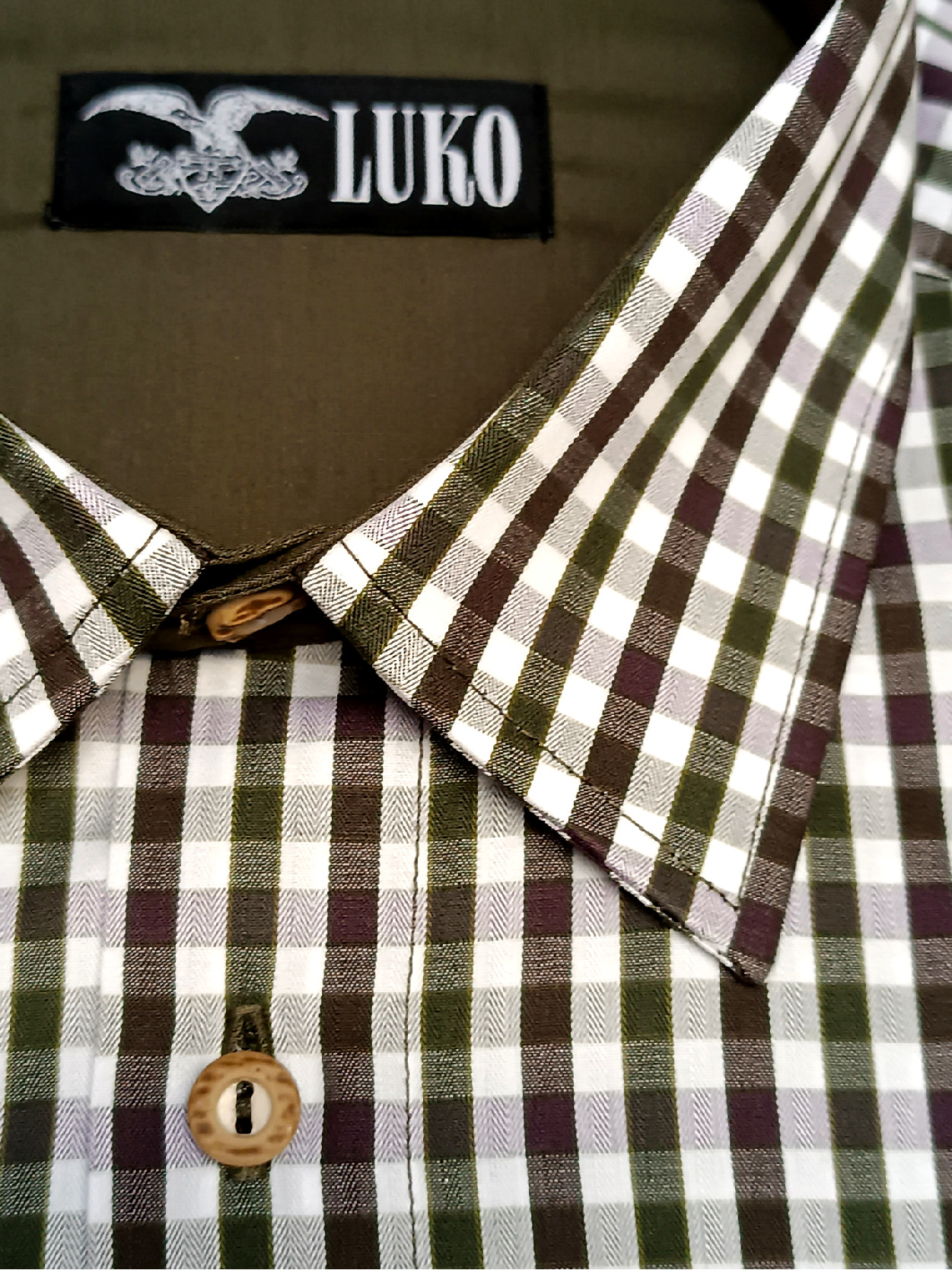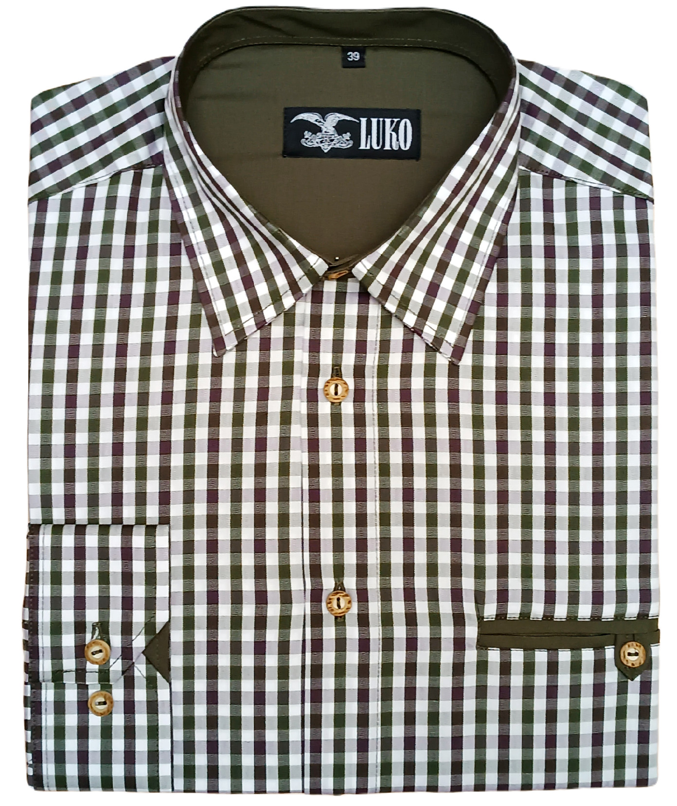 Pánská košile s dlouhým rukávem ze 100% bavlny. Tento materiál uspokojuje veškeré nároky na pohodlnost. Vzor látky je zeleno bílé sportovní káro s zelenou kombinací uvnitř.