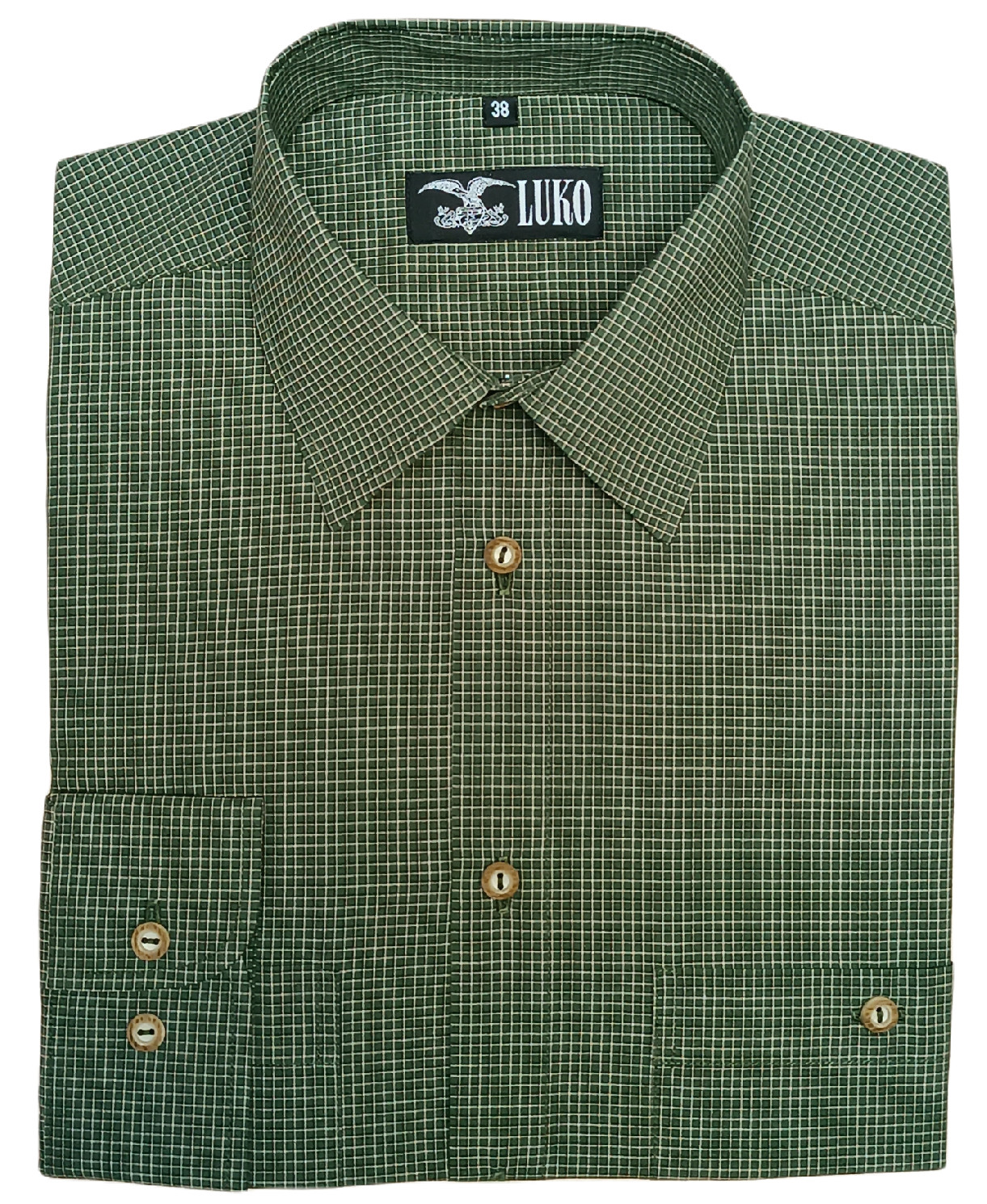Stylová pánská košile v decentním zeleném káru je ideální volbou pro každodenní nošení i volnočasové aktivity. Díky 100% bavlně je velmi příjemná na dotek, prodyšná a zároveň odolná vůči opotřebení.