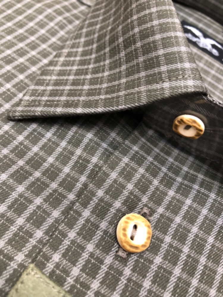 Knoflíky jsou z imitace paroží (stálobarevné a samozřejmostí je náhradní knoflík), košile má rovný střih a jednu pasovanou kapsu.