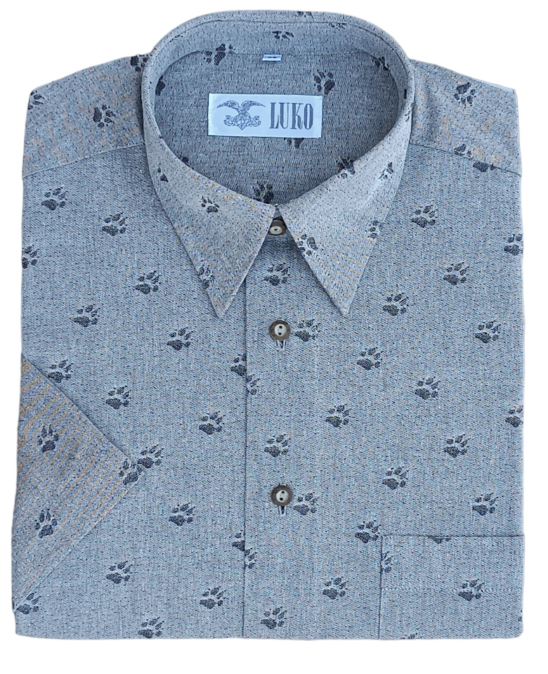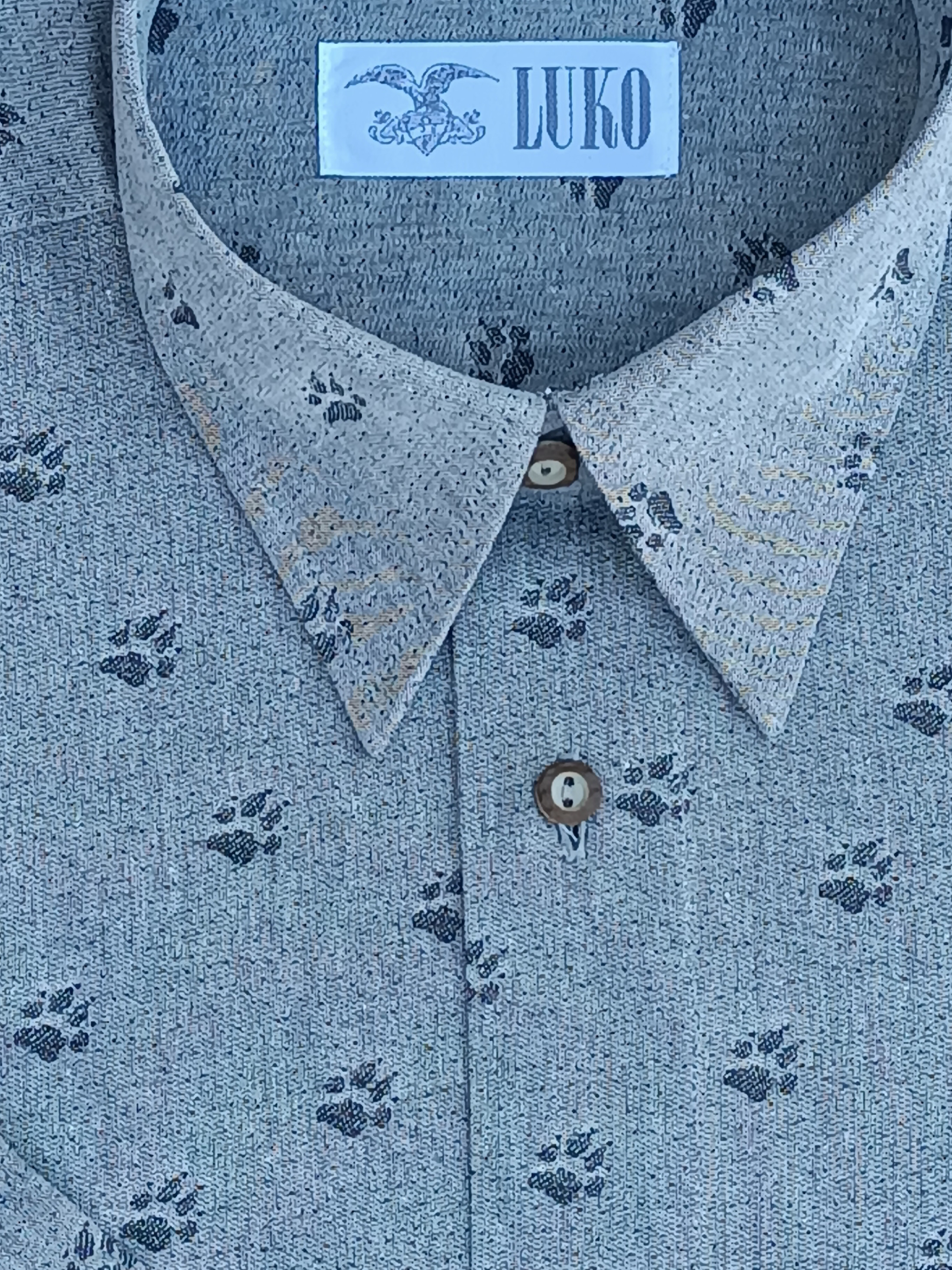 Pánská žakárově tkaná košile s dlouhým rukávem a vytkávaným motivem tlapy. Ojedinělá kolekce žakárových košil, kterou naleznete pouze u firmy LUKO, s. r. o. Směsový materiál 85% bavlna/15% viskóza, který je použit na výrobu této jedinečné košile, je velmi snadný na údržbu, příjemný na omak a zároveň má výrazně sníženou mačkavost.